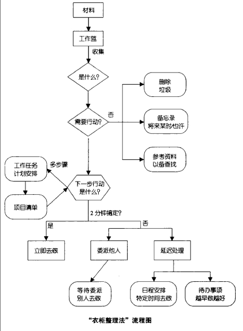 - 永远不要再放回收集篮(被迫中断的事情除外):当你第一次从收集篮中取出事情时,立刻判定它的实质以及处理方法,永远不要把它再次放回收集篮内,争取第一次就把它做到最好。