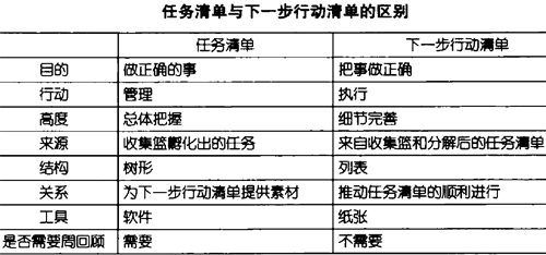 任务清单与下一步行动清单的区别(图)